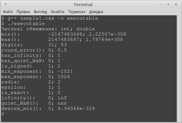 Розглянемо приклад простої програми, яка виводить деякі з даних обмежень системи для різних типів.